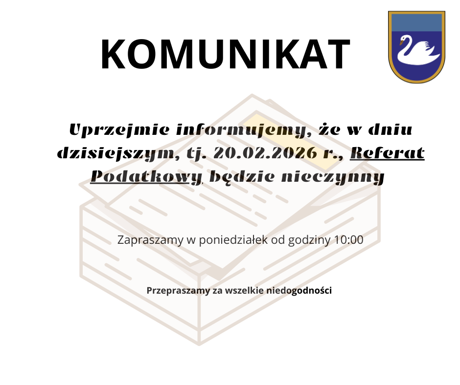 W dniu 20.02.2026 Referat Podatkowy będzie nieczynny